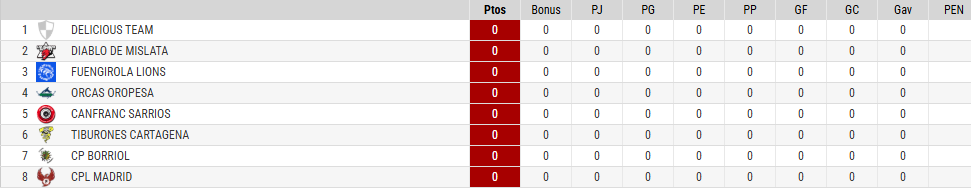 Clasificación liga Mapax