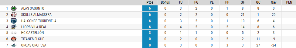 Clasificación Sénior 1ª Div.